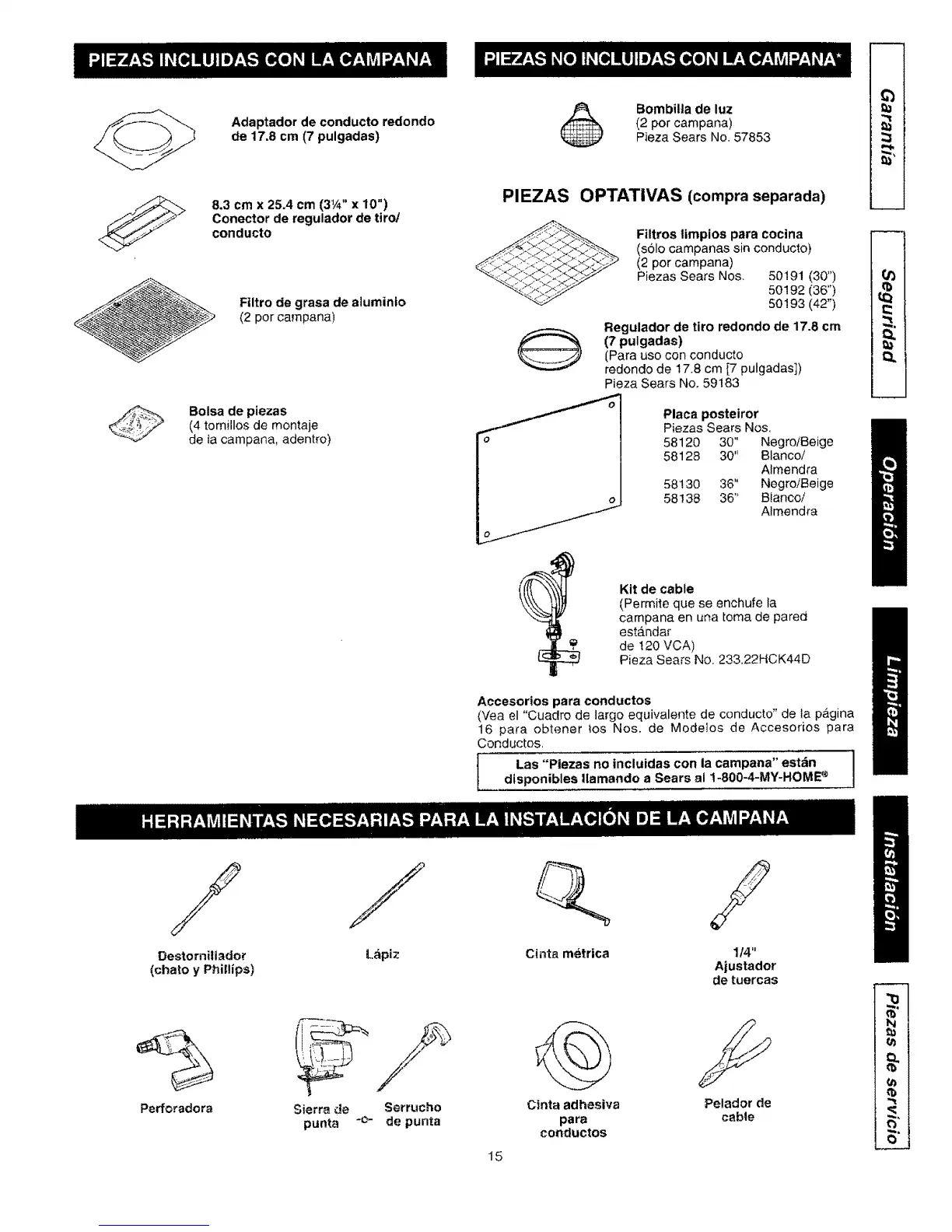 disponibles llamando a Sears al 1-800-4-MY-HOME e