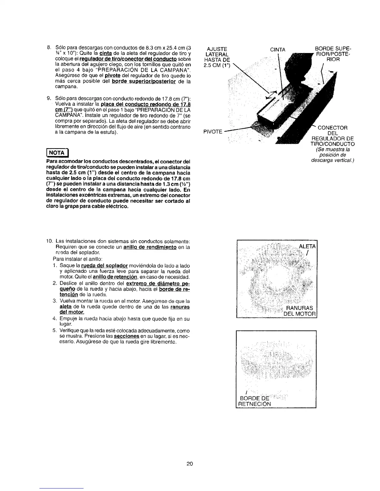 CAMPANA". Instale un regutador de tiro redondo de 7" (se