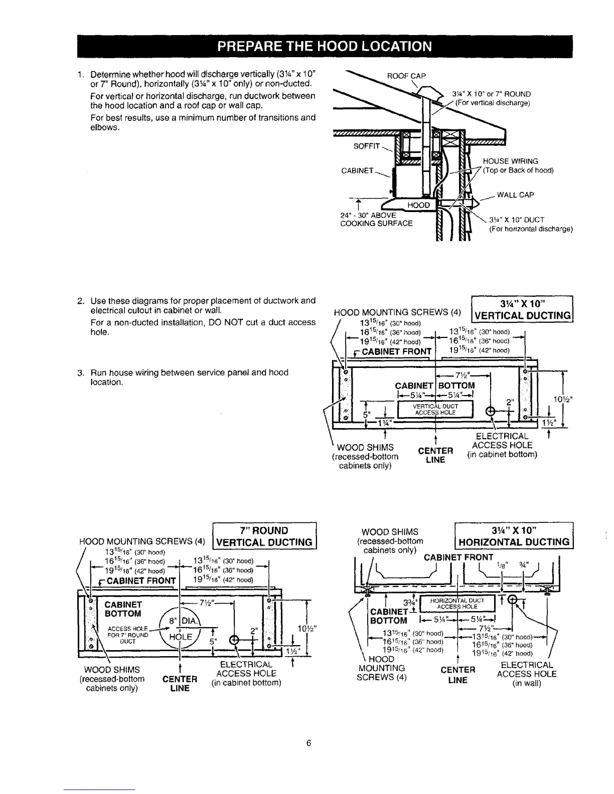 1. Determine whether hood will discharge vertically (31A"x 10"