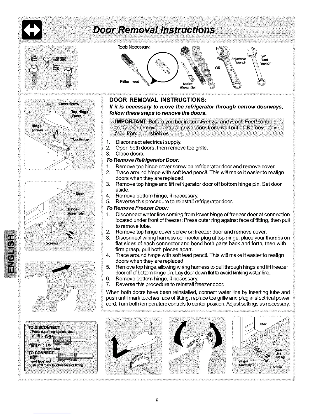 door off ofbottom hinge pin. Lay door down flat to avoid kinking water line.