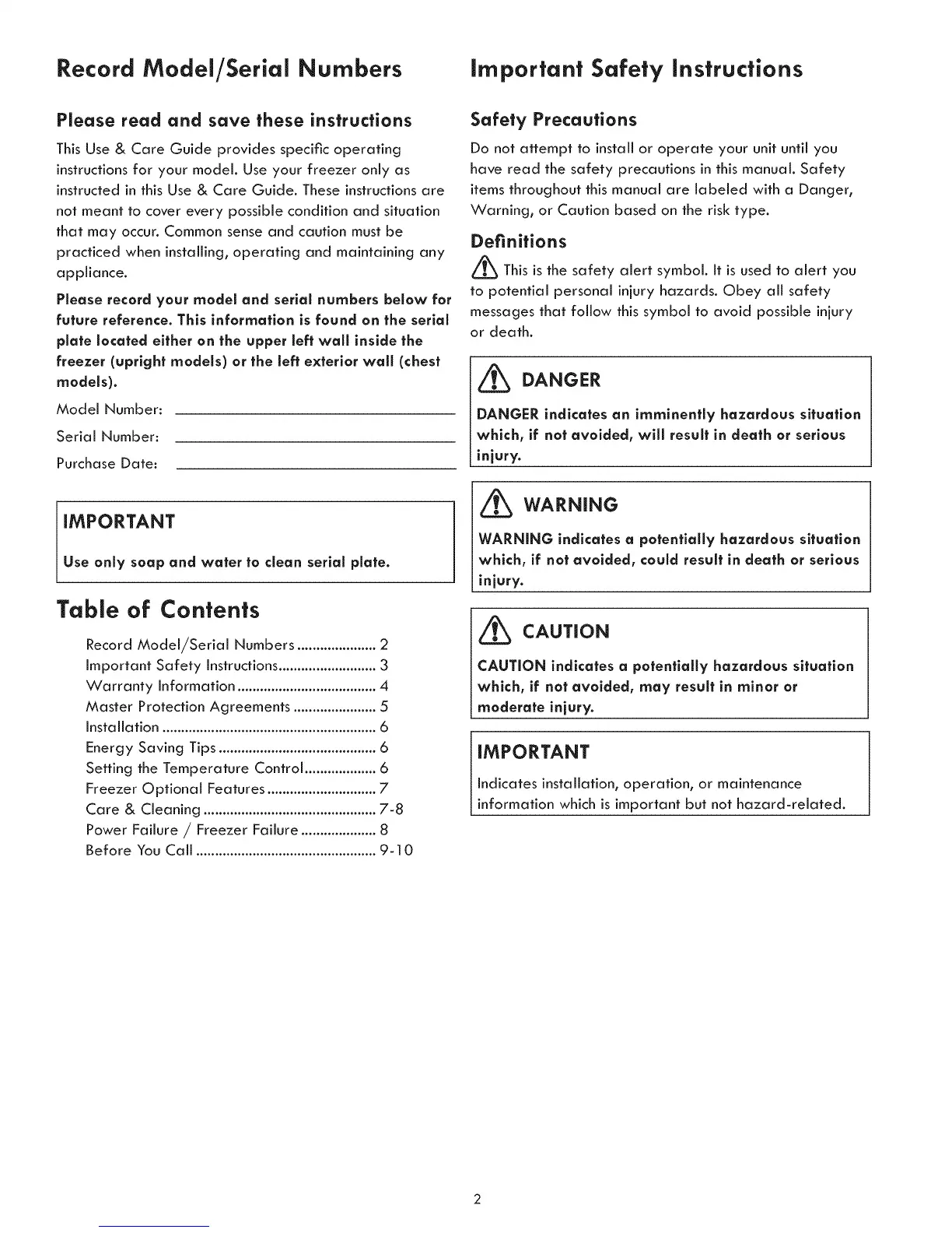 Record Model/Serial Numbers .....................2