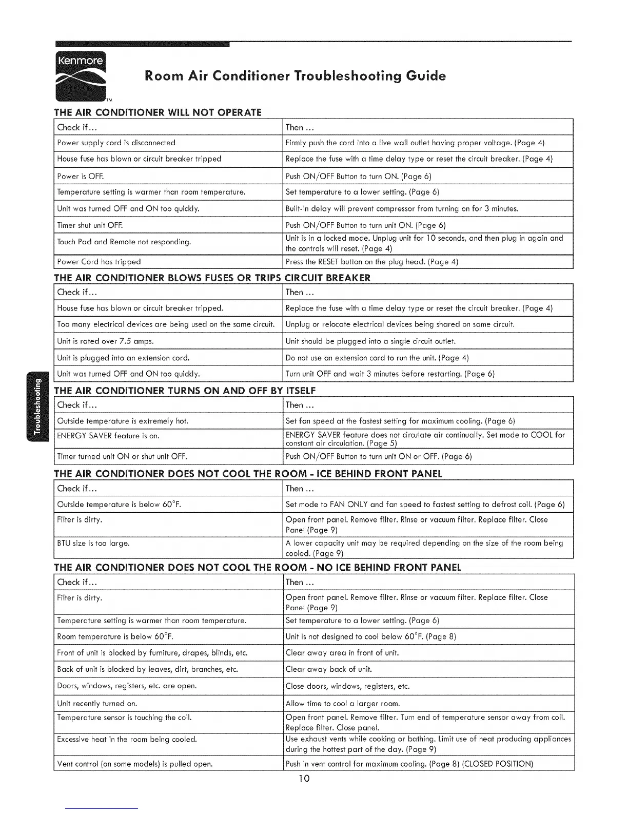 THE AiR CONDiTiONER DOES NOT COOL THE ROOM mNO iCE BEHIND FRONT PANEL