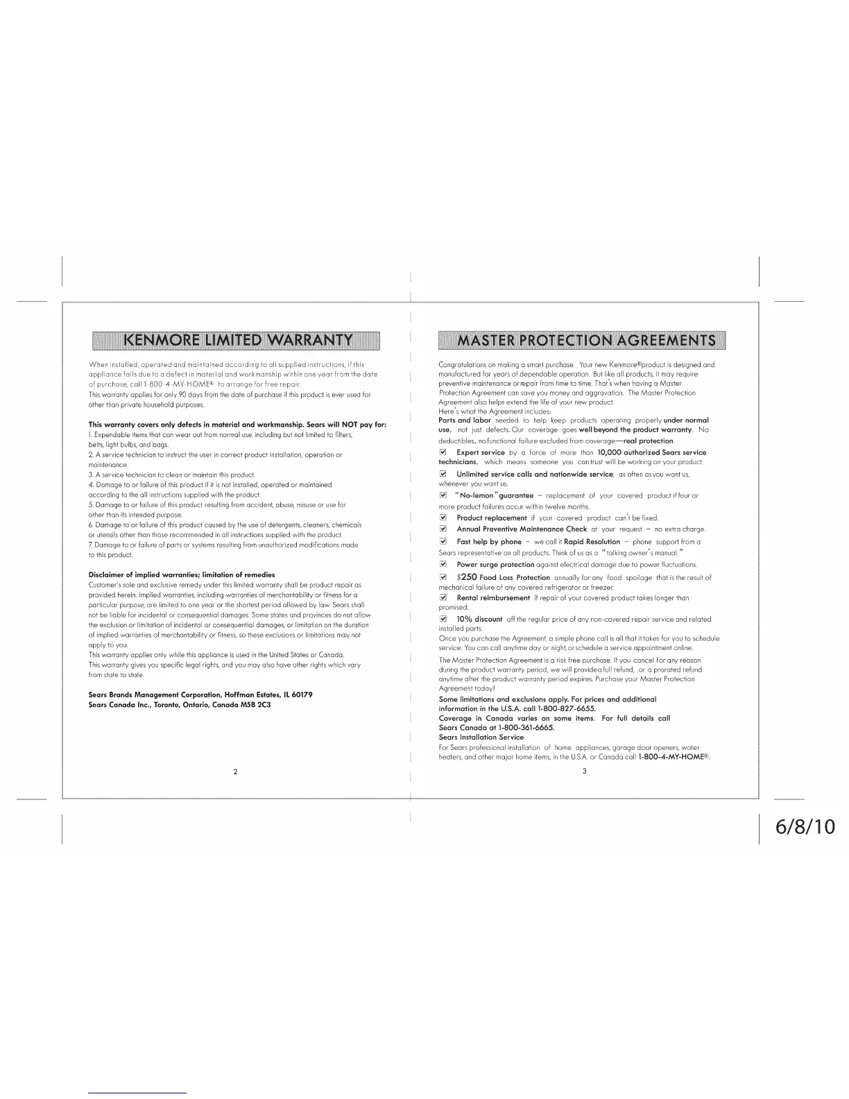 heaters, and other major home items,in the U.S.A.or Canada call 1-800-4-MY-HOME®.