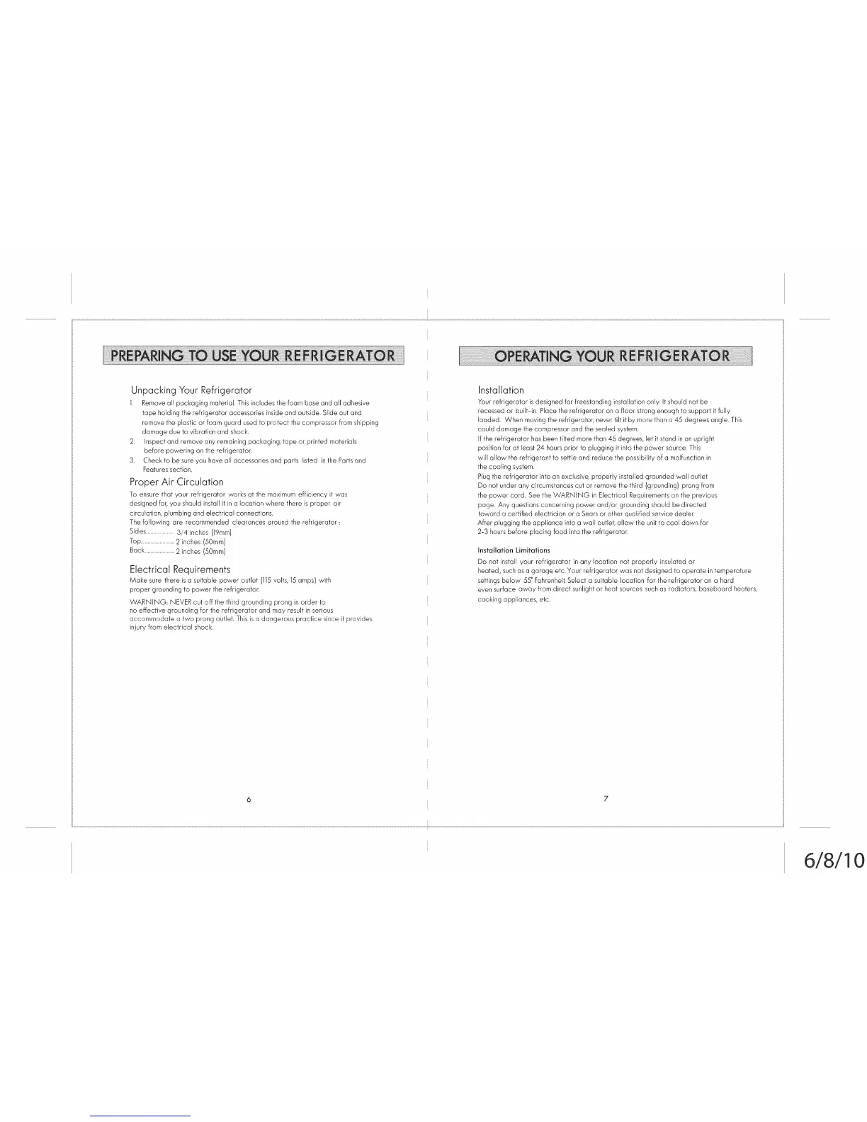 settings below 55° Fahrenheit.Select a suitable location for the refrigerator on a hard