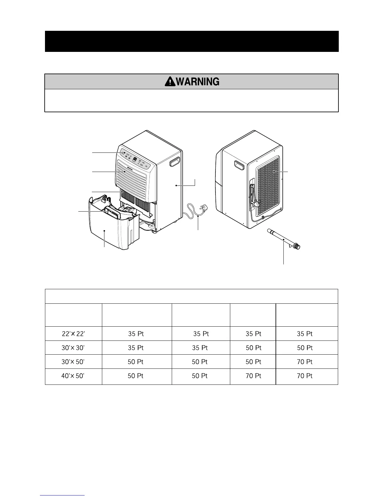 Kenmore 25850 - DEHUMIDIFIER FEATURES AND SELECTION; Product Components Overview; Model Selection Guide