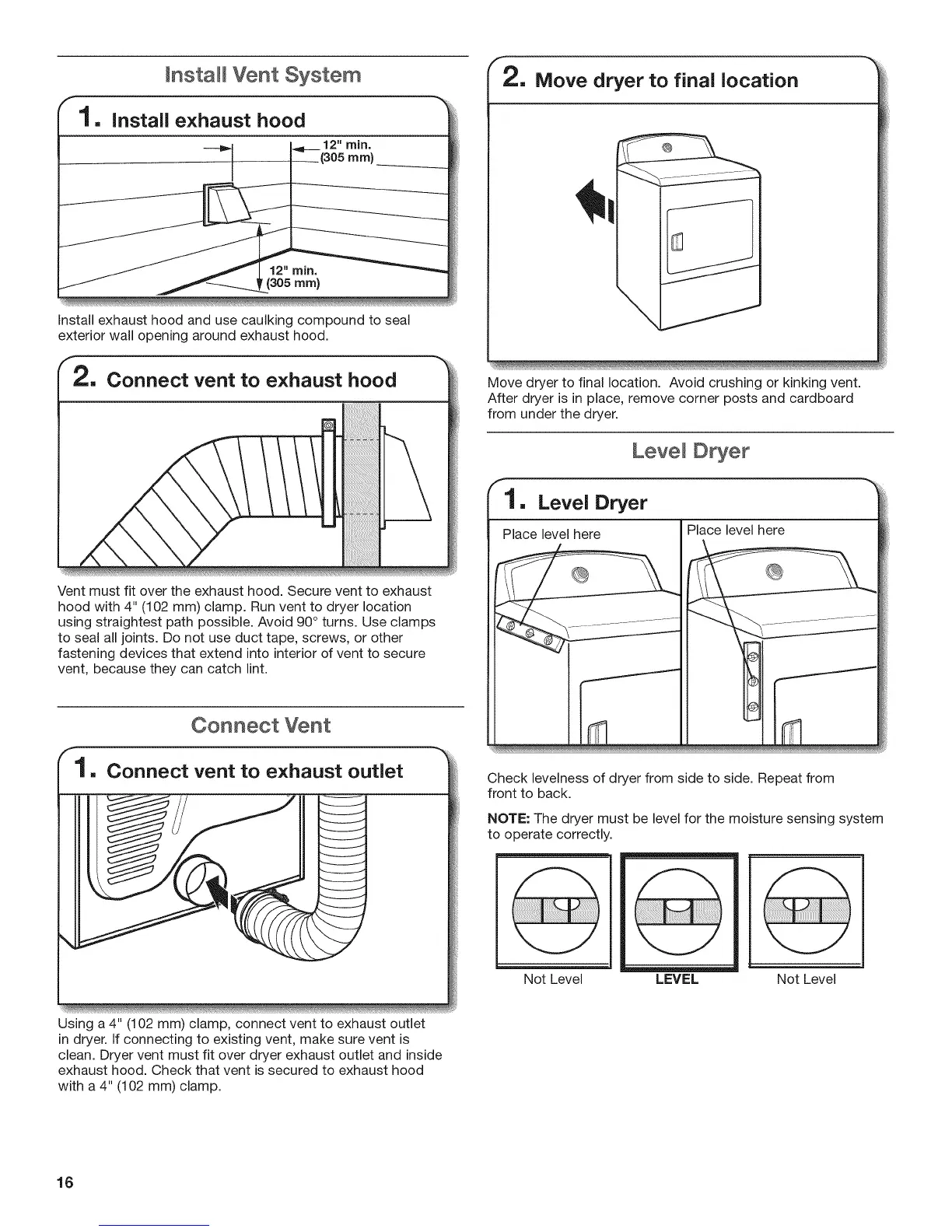 hood with 4" (102 mm) clamp. Run vent to dryer location