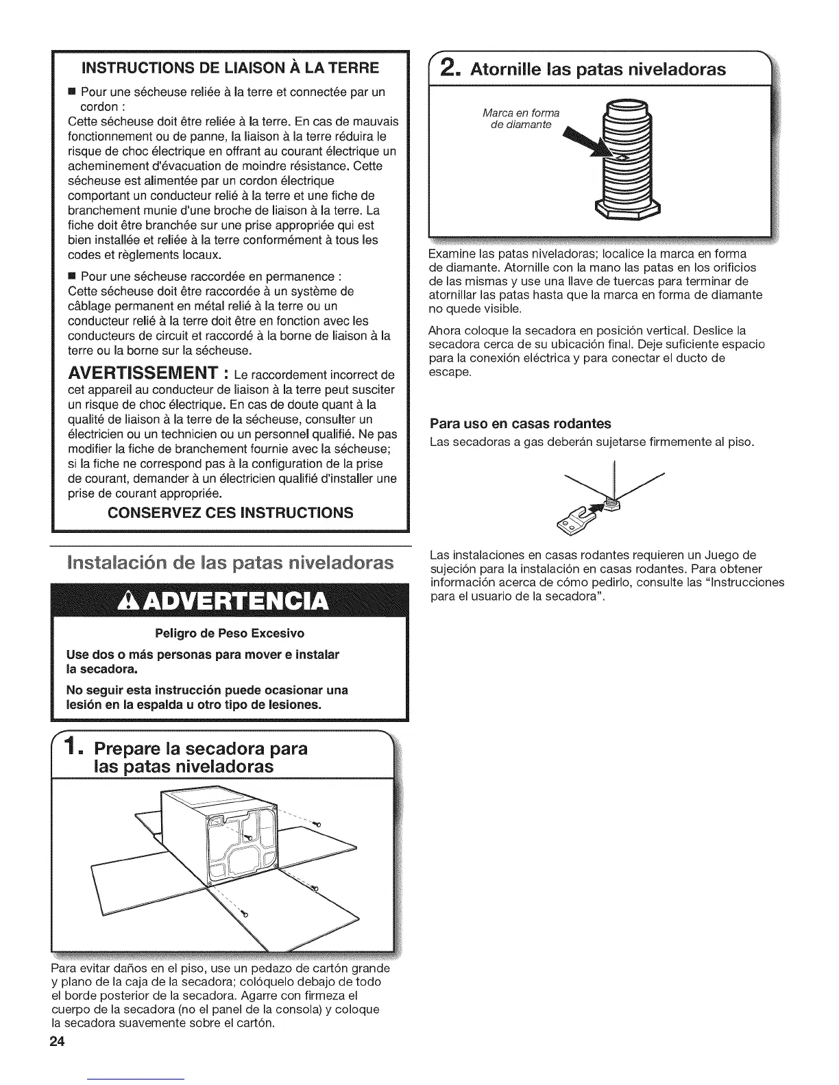 Instalaci6n de las patas niveladoras