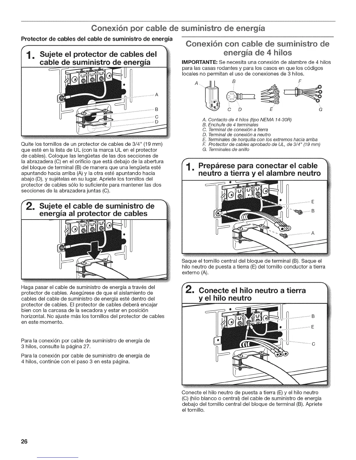 F. Protector de cables aprobado de UL, de 3/4" (19 mm)
