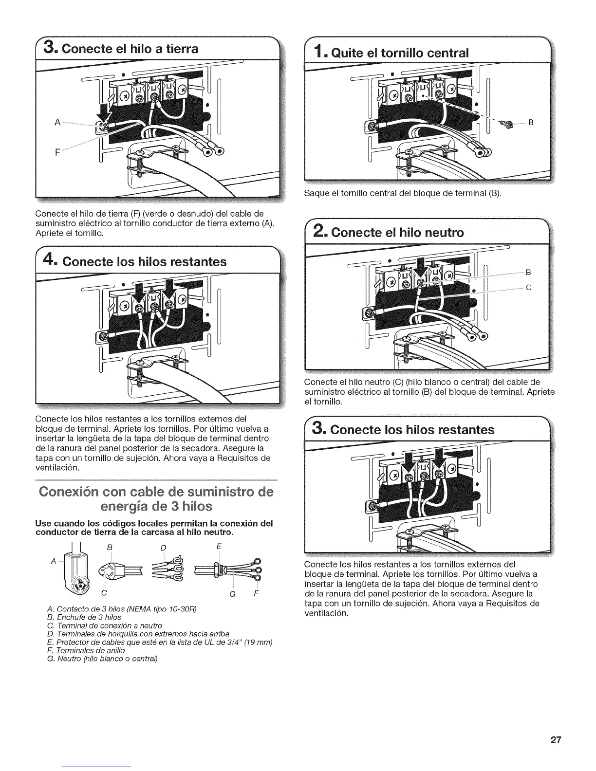 suministro el6ctrico al tornillo (B) del bloque de terminal. Apriete