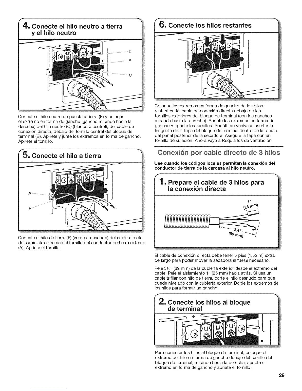 El cable de conexi6n directa debe tener 5 pies (1,52 m) extra