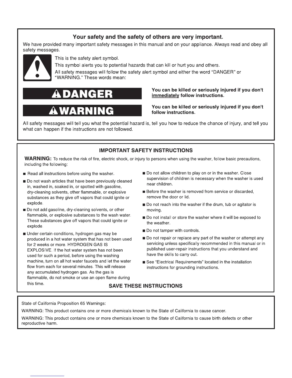 Kenmore 2801*010 - WASHER SAFETY; IMPORTANT SAFETY INSTRUCTIONS