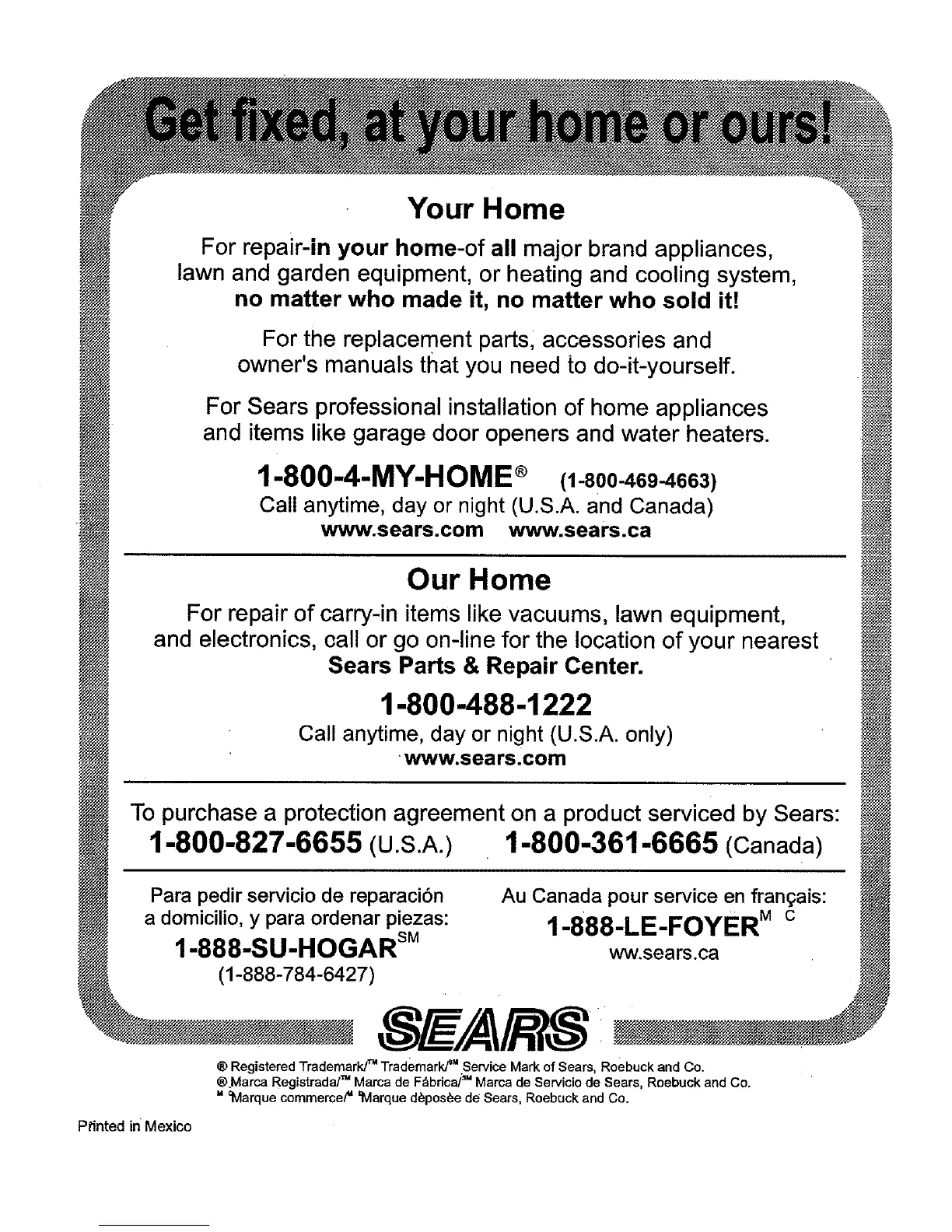 ® Registered Trademark/TM Trademark# M.Service Mark of Sears, Roebuck and Co.