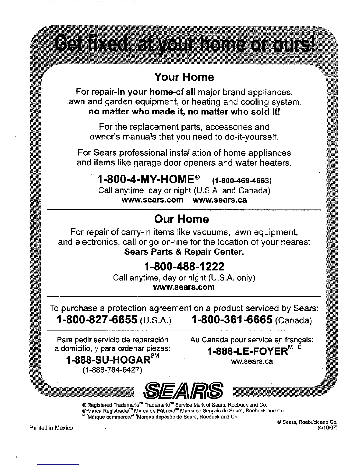 ®-Marca Registrada/TM Marca de F&brica? NMarca de Se_ic[o de Sears, Roebuck and Co.