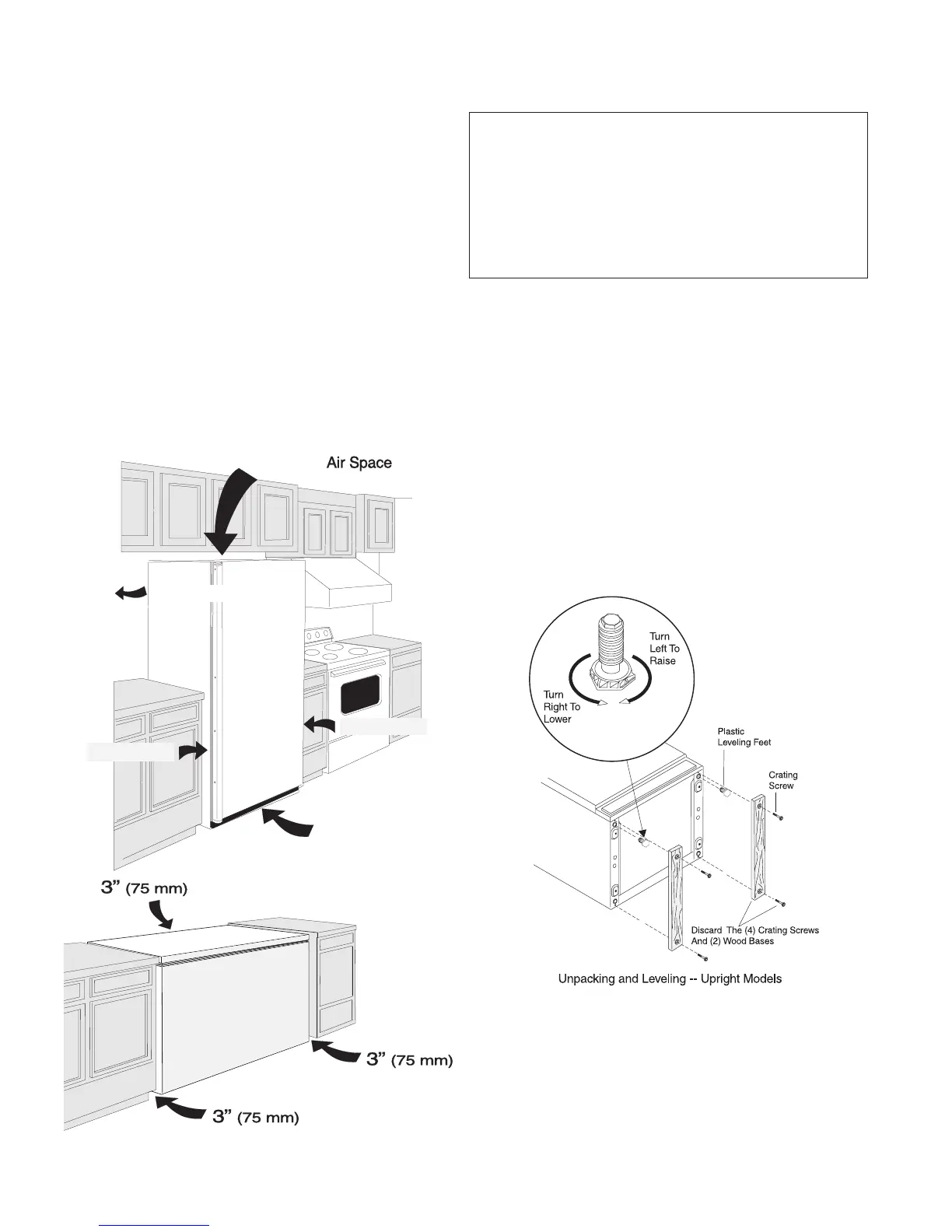Leave a 3 inch (75 mm) space on all sides of the freezer