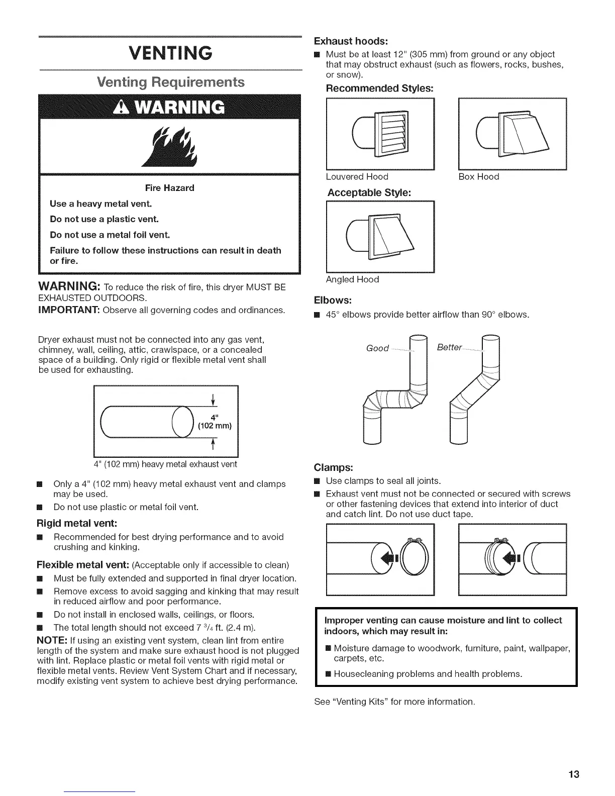 [] Only a 4" (102 mm) heavy metal exhaust vent and clamps