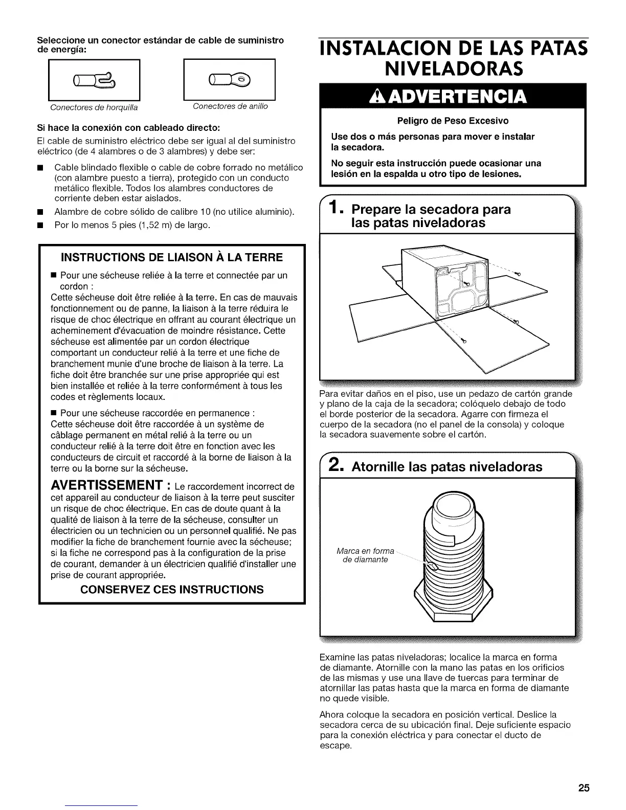 Examine las patas niveladoras; Iocalice la marca en forma