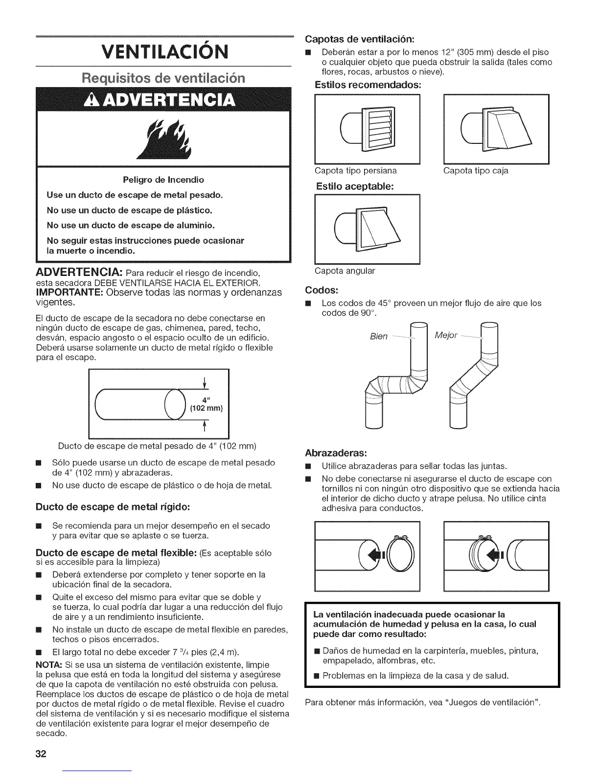 de que la capota de ventilaci6n no est6 obstruida con pelusa.