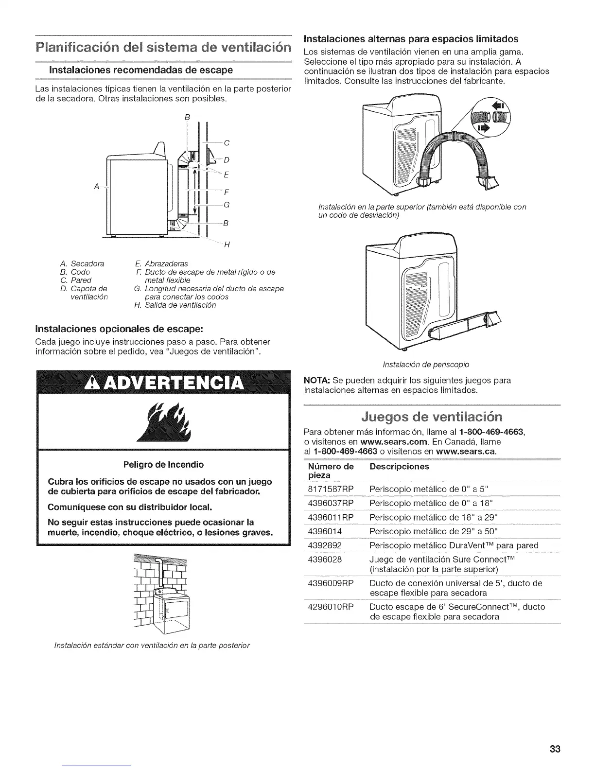 informaci6n sobre el pedido, vea "Juegos de ventilaci6n".