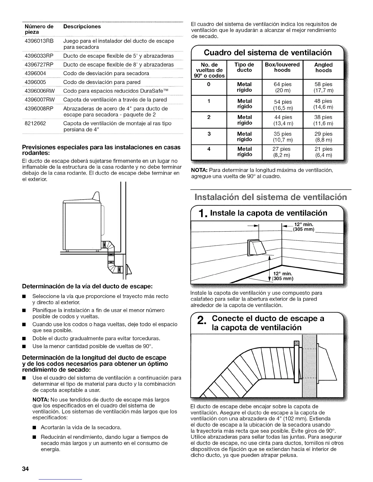 ventilaci6n. Asegure el ducto de escape a la capota de
