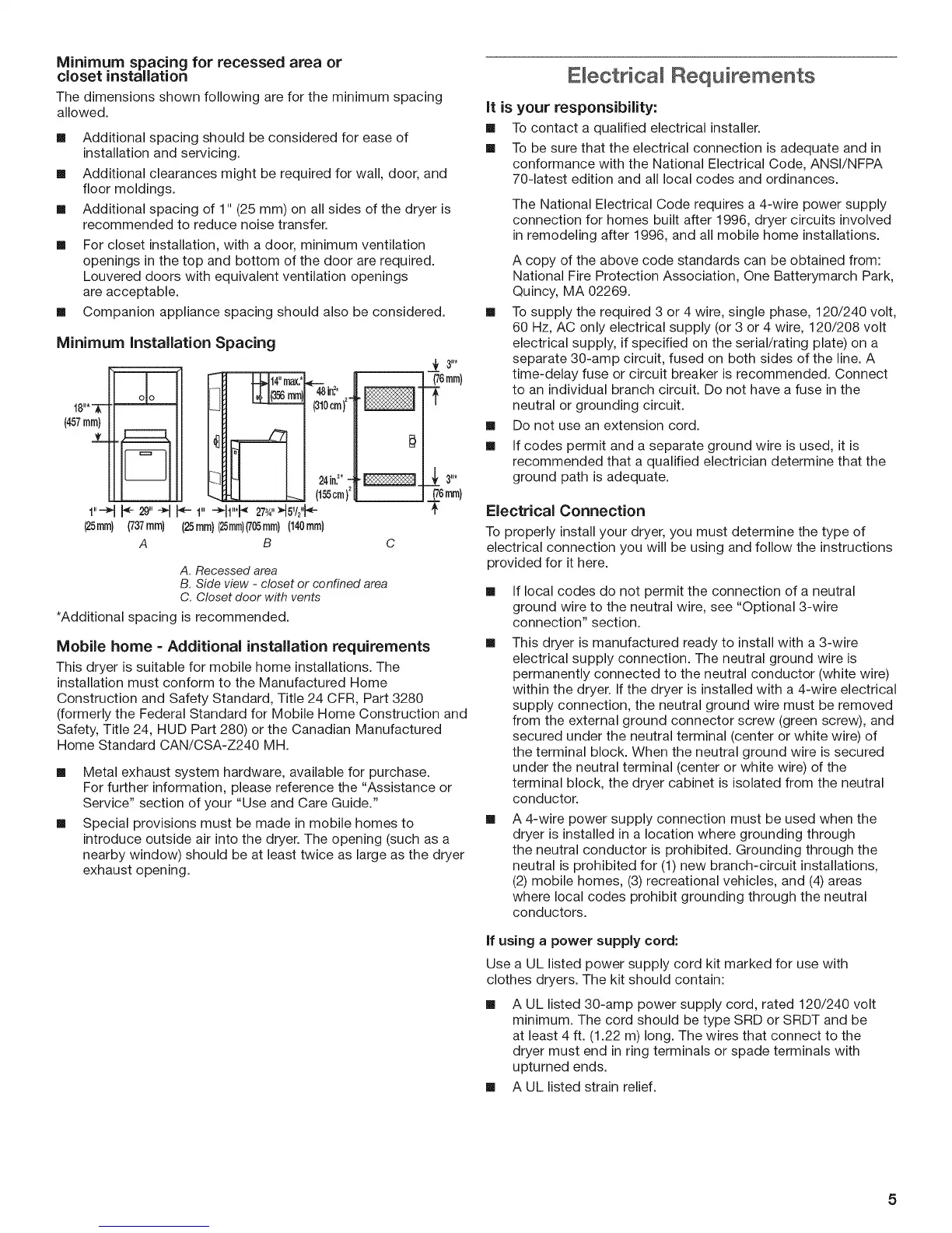 [] Additional spacing of 1" (25 mm) on all sides of the dryer is