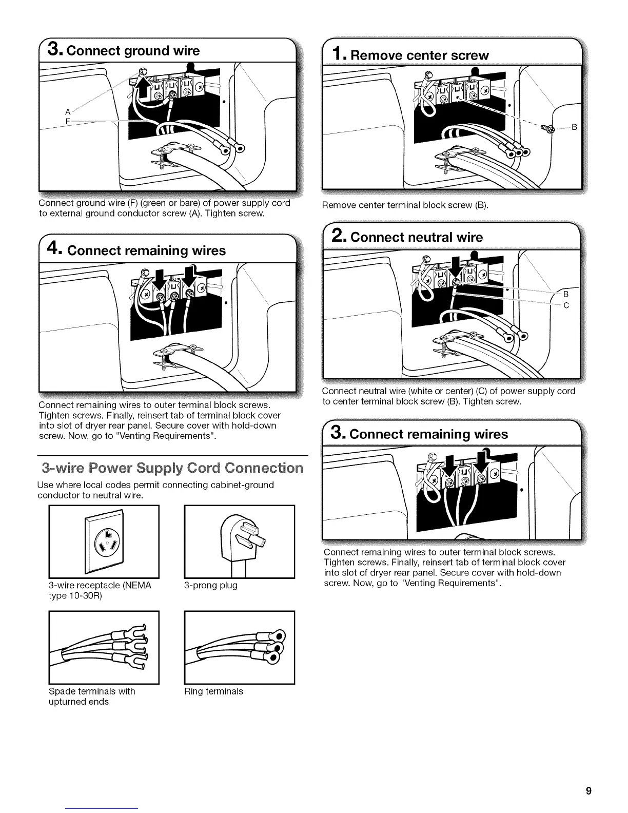 Connect remaining wires to outer terminal block screws.