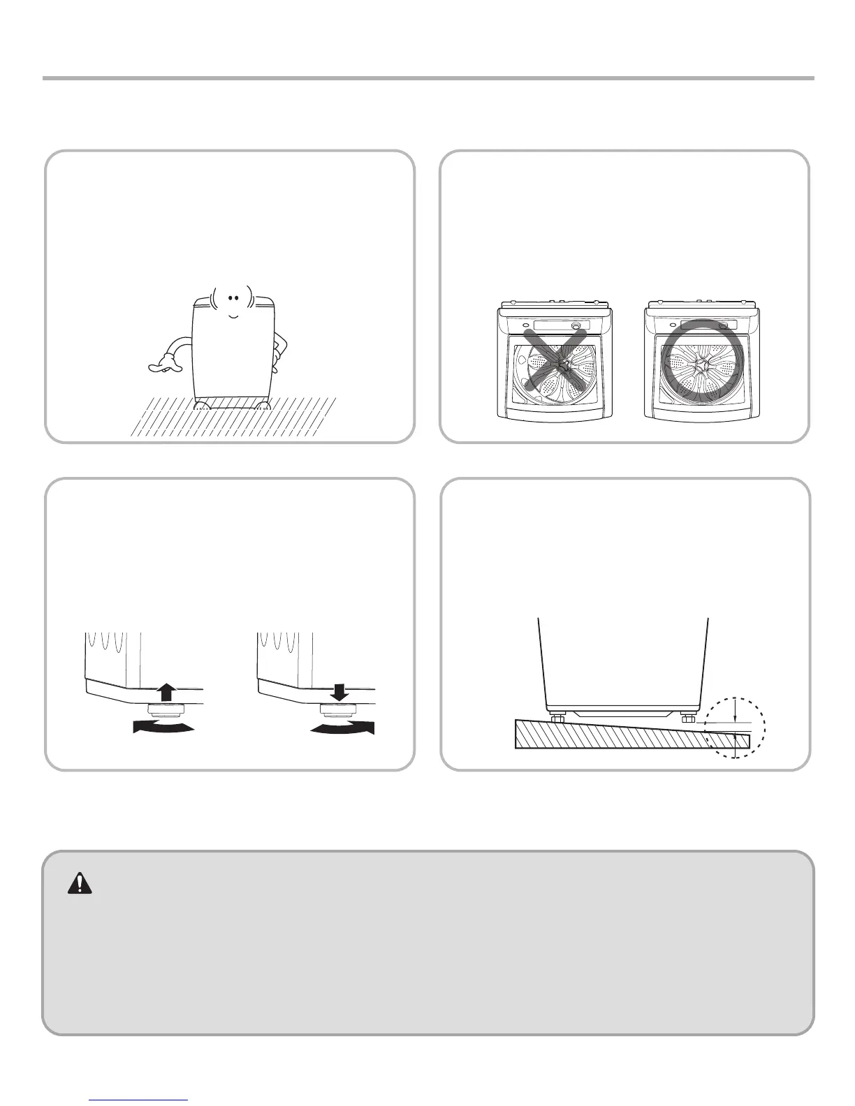 Install the washing machine on a level and firm surface, and tilt should be less than 1˚