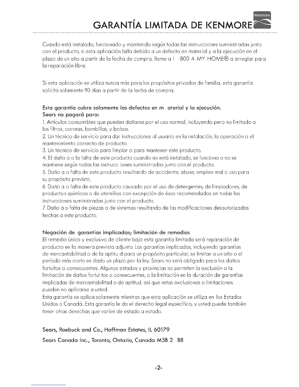 plazo de un aBo a partir de la fecha de compra, Ilame a 1 800 4 MY HOME@ a arreglar para