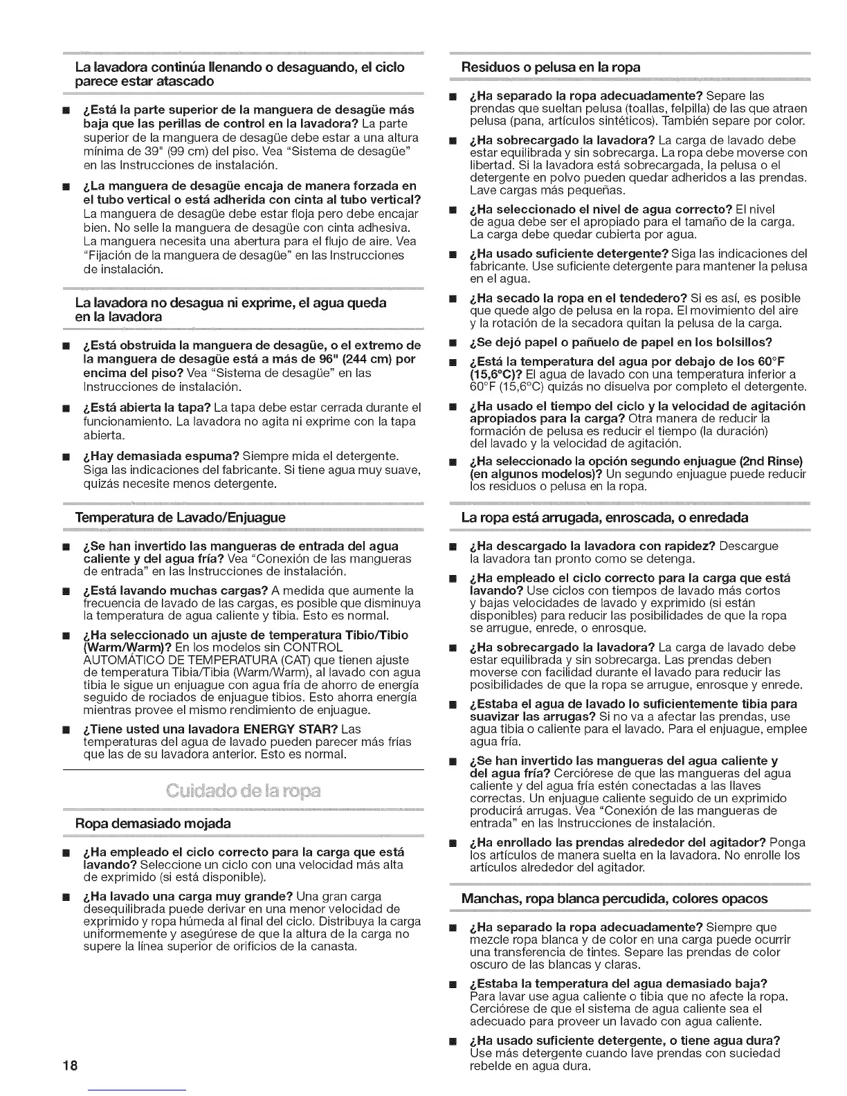 del agua fria? Cerci6rese de que las mangueras del agua