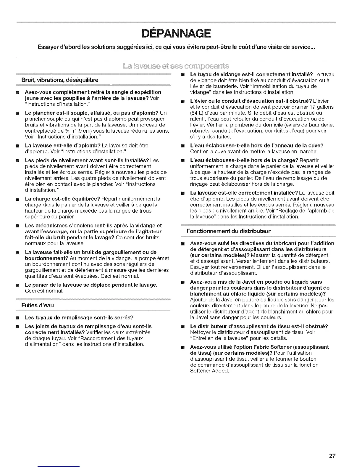 La laveuse est-elle d'aplomb? La laveuse doit _tre