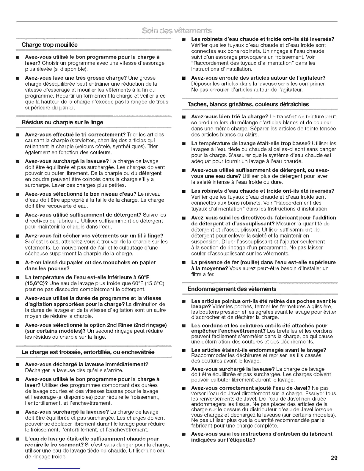 [] Avez=vous surcharg_ la laveuse? La charge de lavage