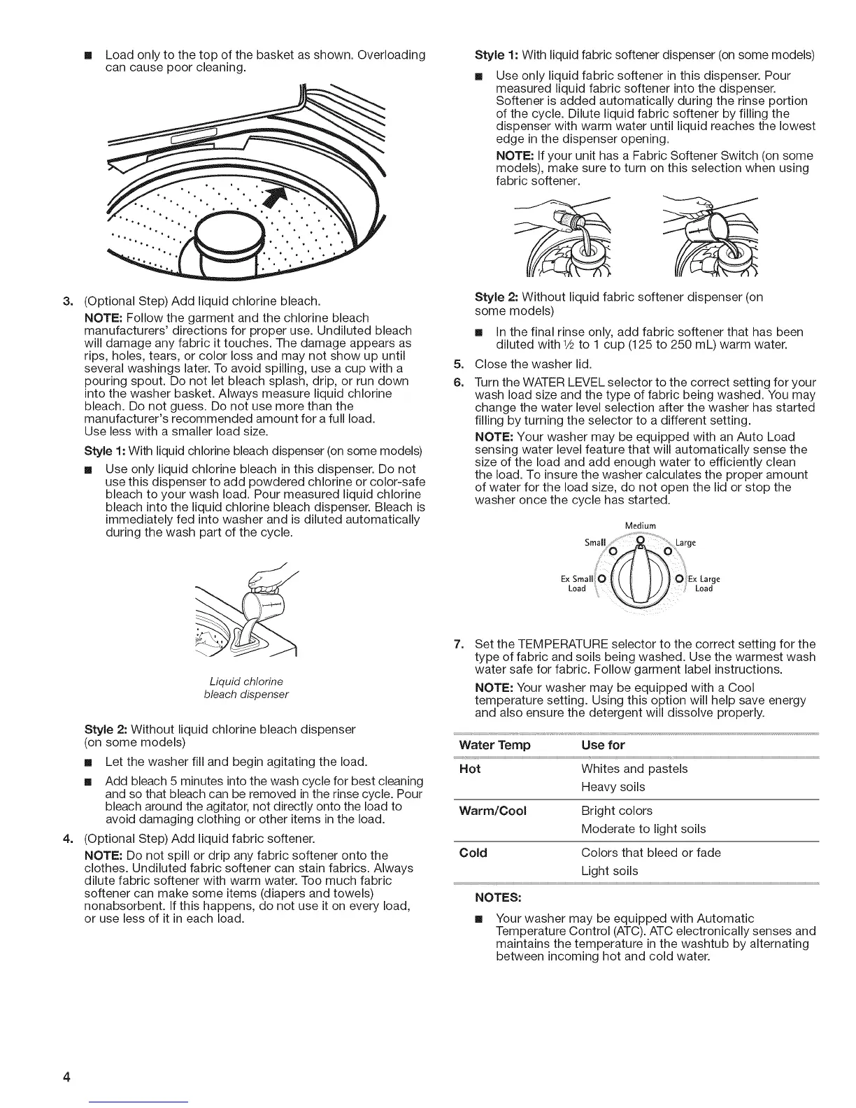Style 1: With liquid chlorine bleach dispenser (on some models)