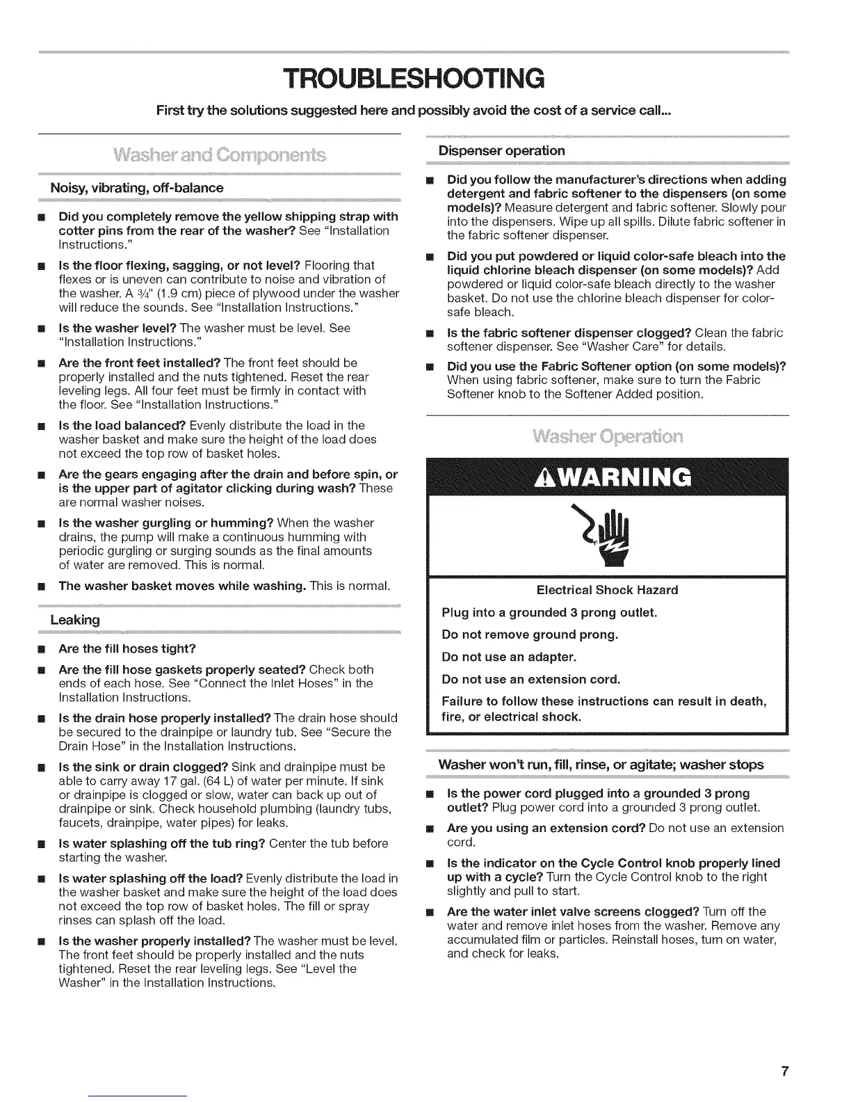 [] Is the washer properly installed? The washer must be level.