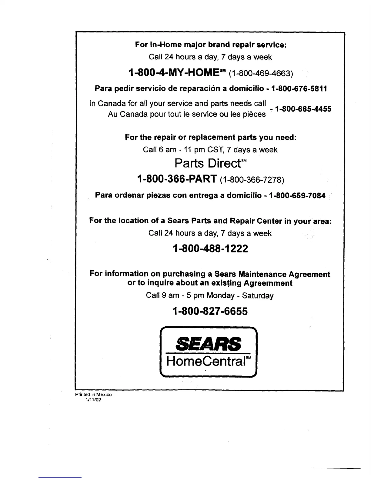 Para pedir servicio de reparaci6n a domicilio - 1-800-676-5811