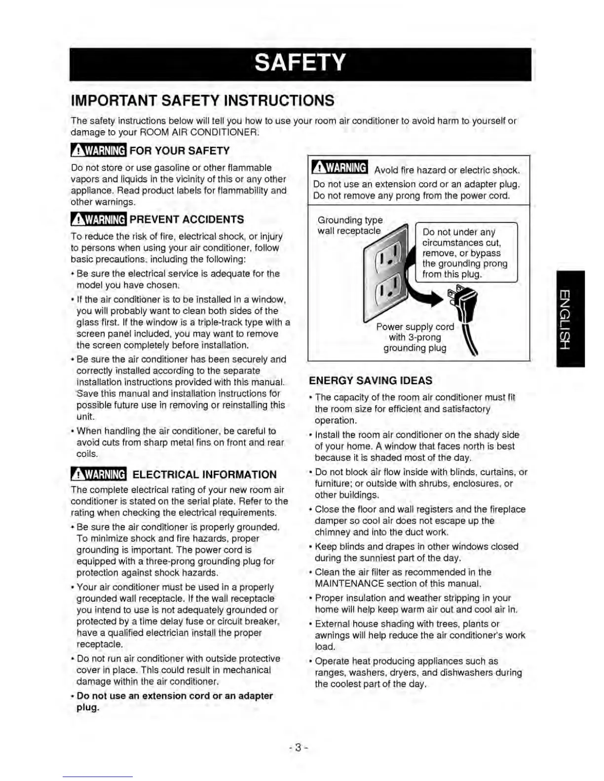 Kenmore 35050 - SAFETY; Important Safety Instructions; General Safety Warnings