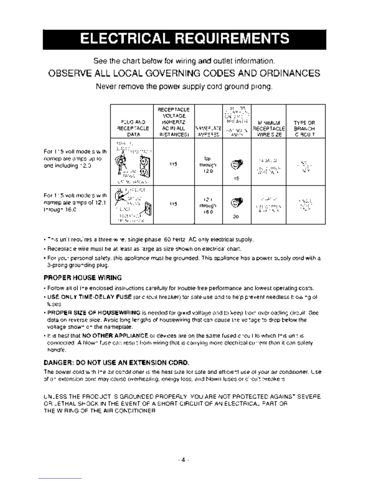 Kenmore 35090 - Electrical Requirements and Wiring; Proper House Wiring; Extension Cord Danger
