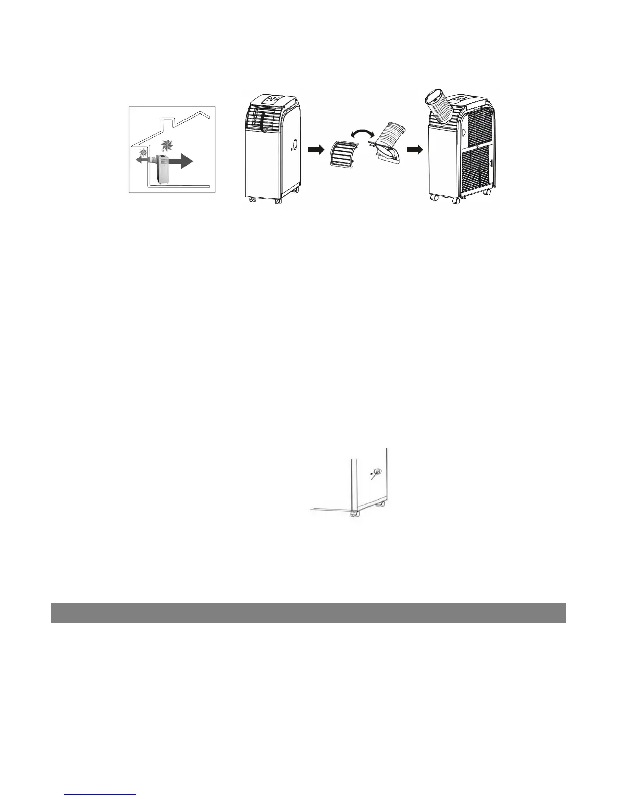 The cold extract air has to be vented out of the room via the air hose. This can be executed via a tilted
