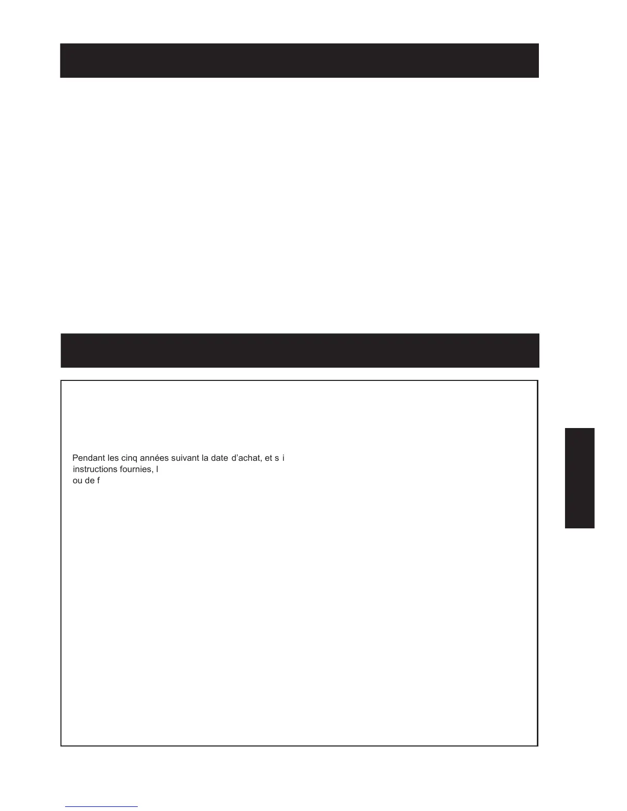 Pendant les cinq années suivant la date d’achat, et s i cet appareil est installé, utilisé et entretenu selon toutes les