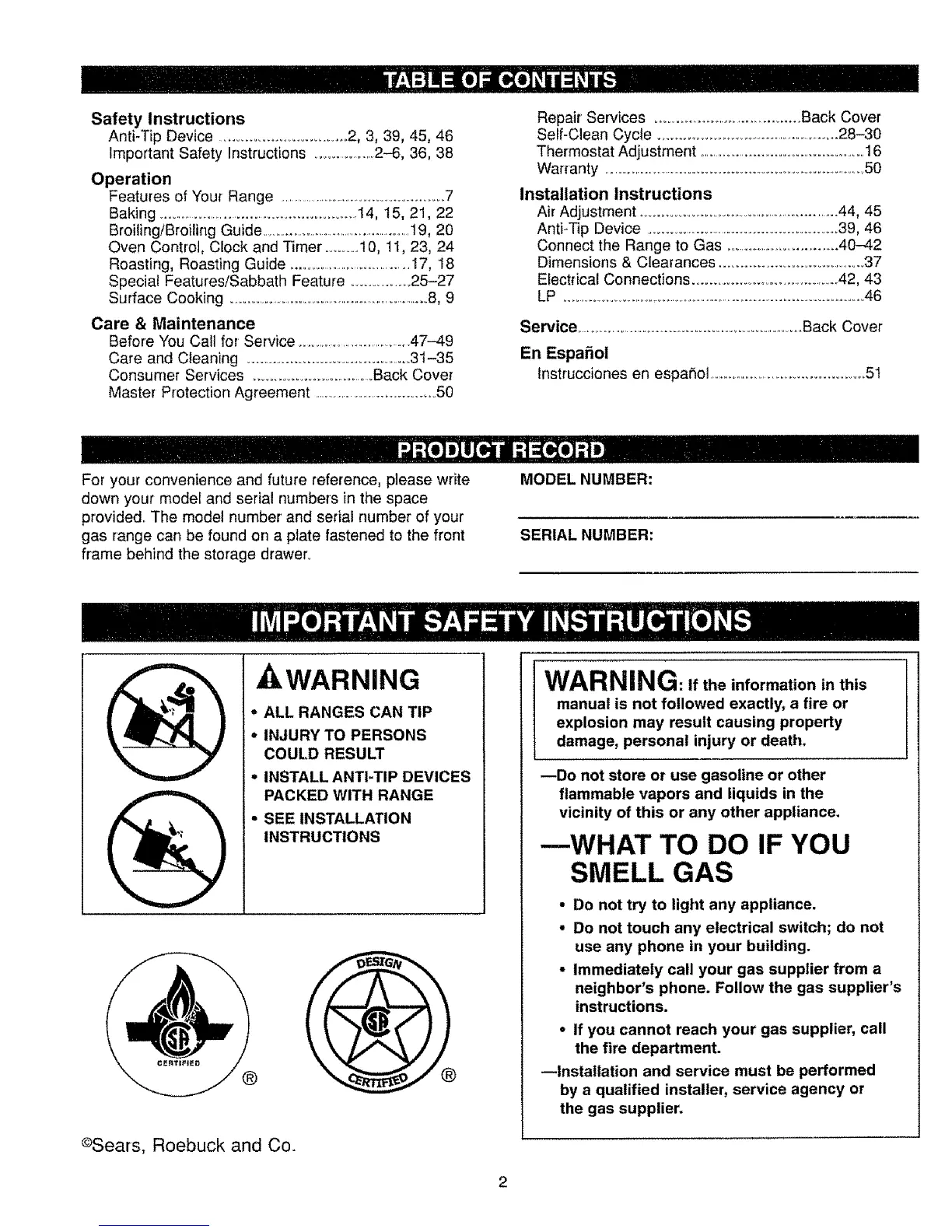 Before You Call for Service .....................................47-49
