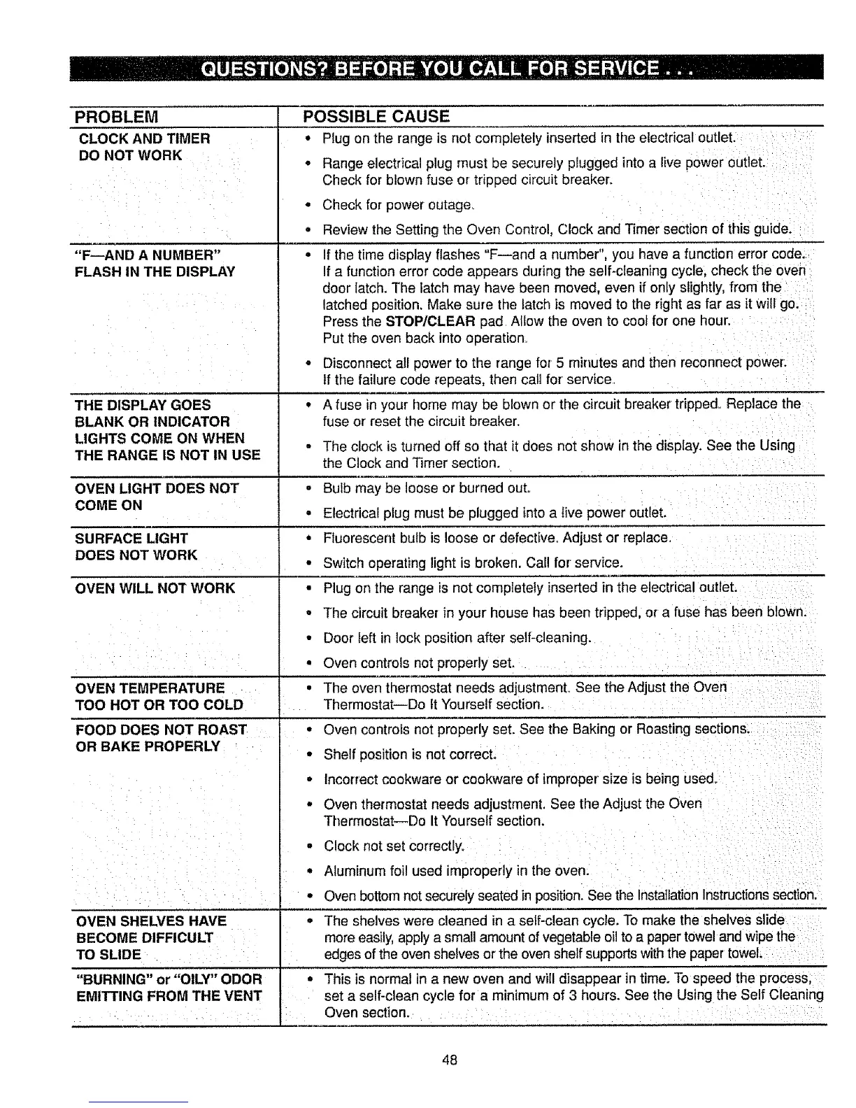 ° Oven controls not properly set. See the Baking or Roasting sections.