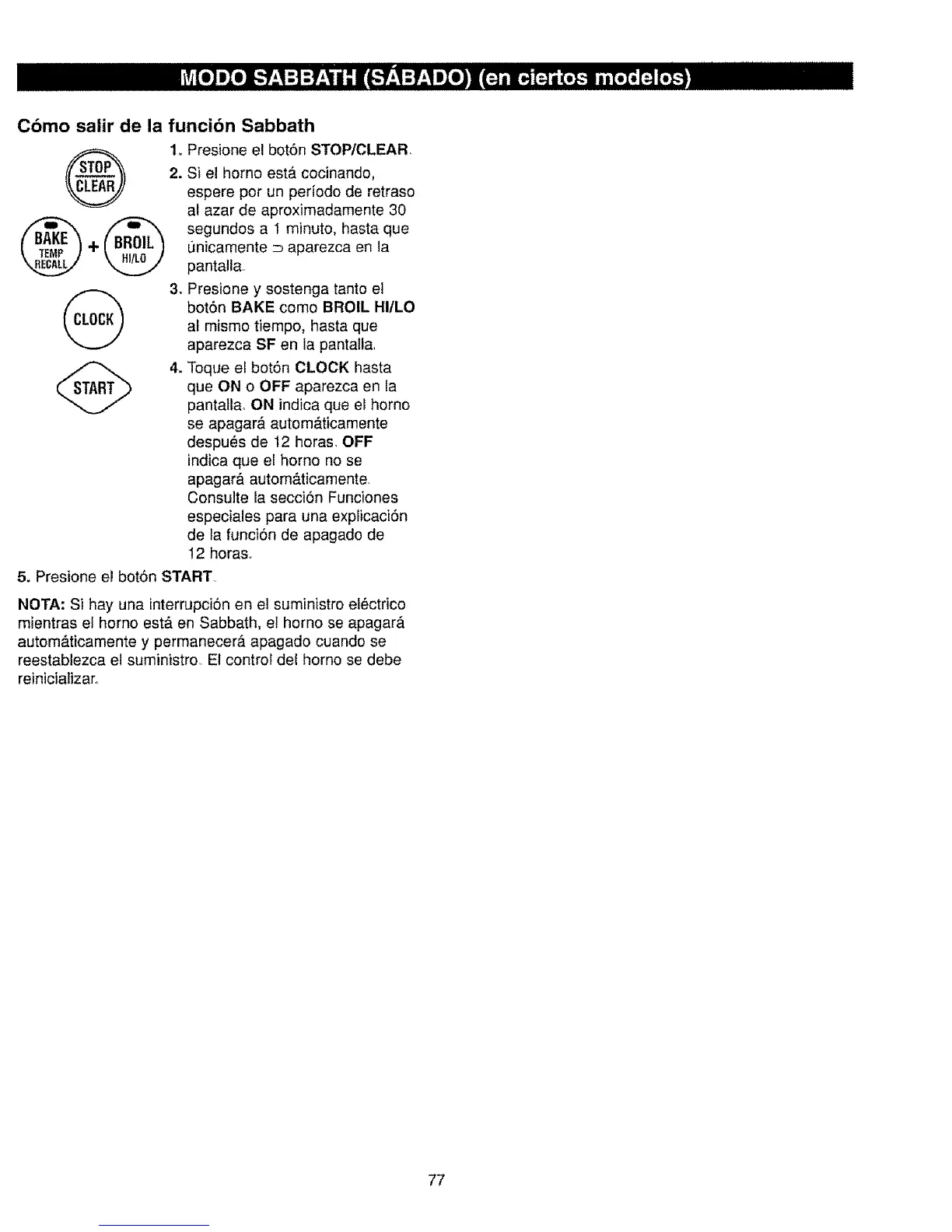 NOTA: Si hay una interrupci6n en el suministro el6ctrico