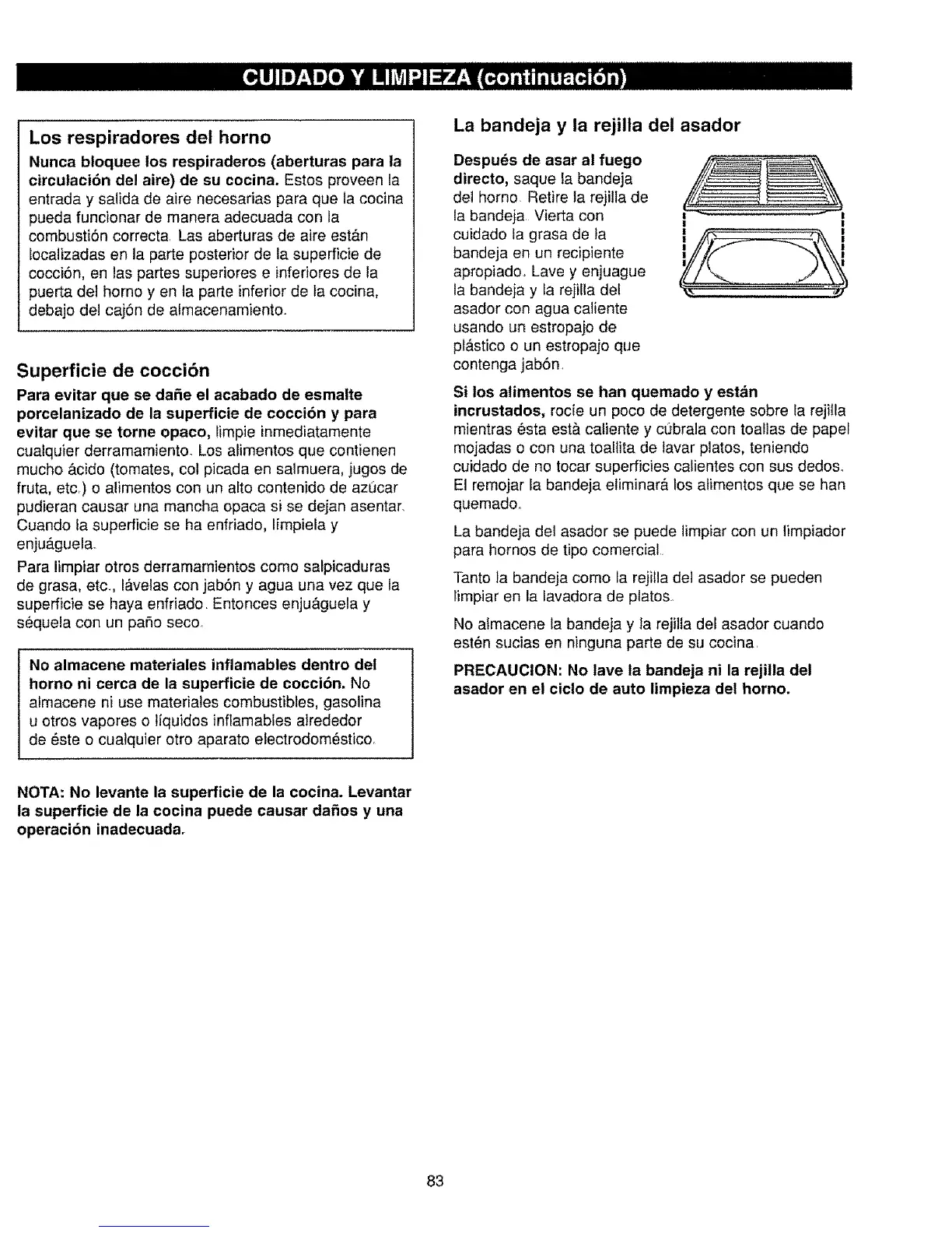 PRECAUCION: No lave la bandeja ni la rejilla del