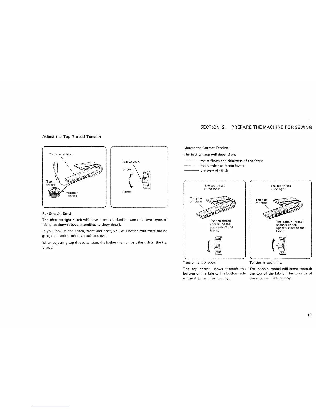 When adjusting top thread tension, the higher the number, the tighter the top