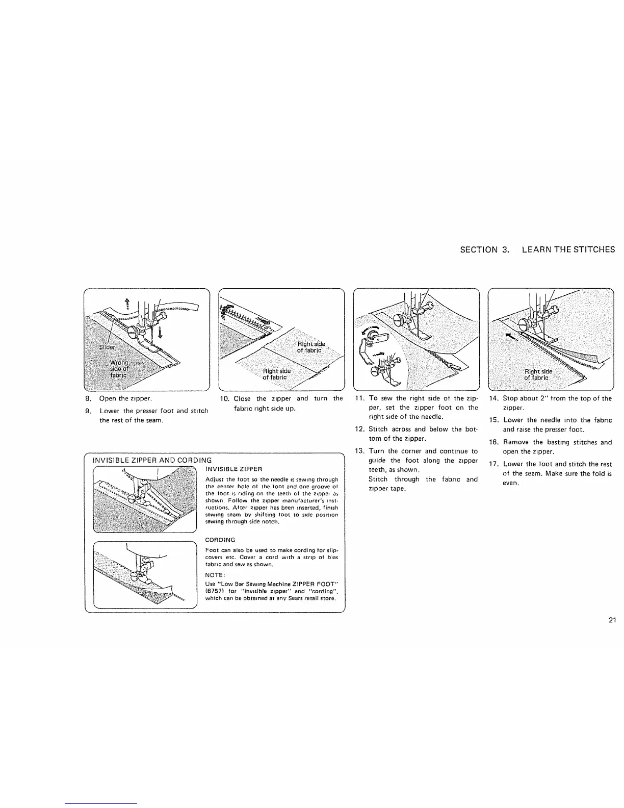 (6757} for '*invisible zipper" and *'cording",