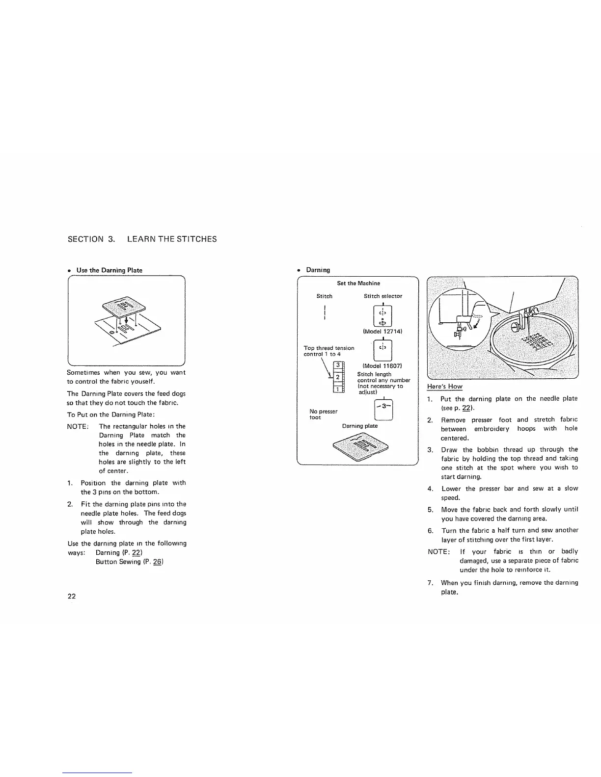 o Use the Darning Plate