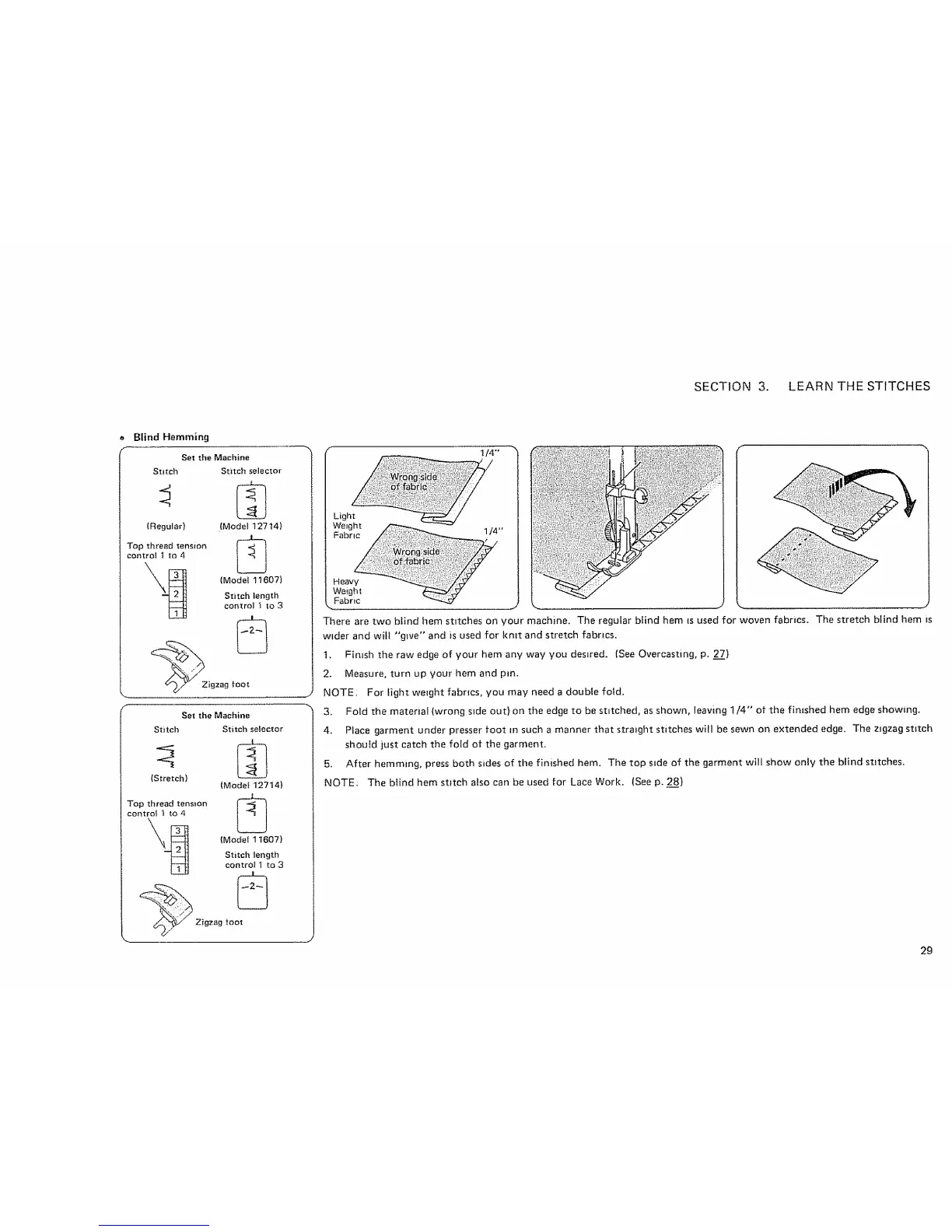 NOTE: The blind hem stttch also can be used for Lace Work. (See p. 28)
