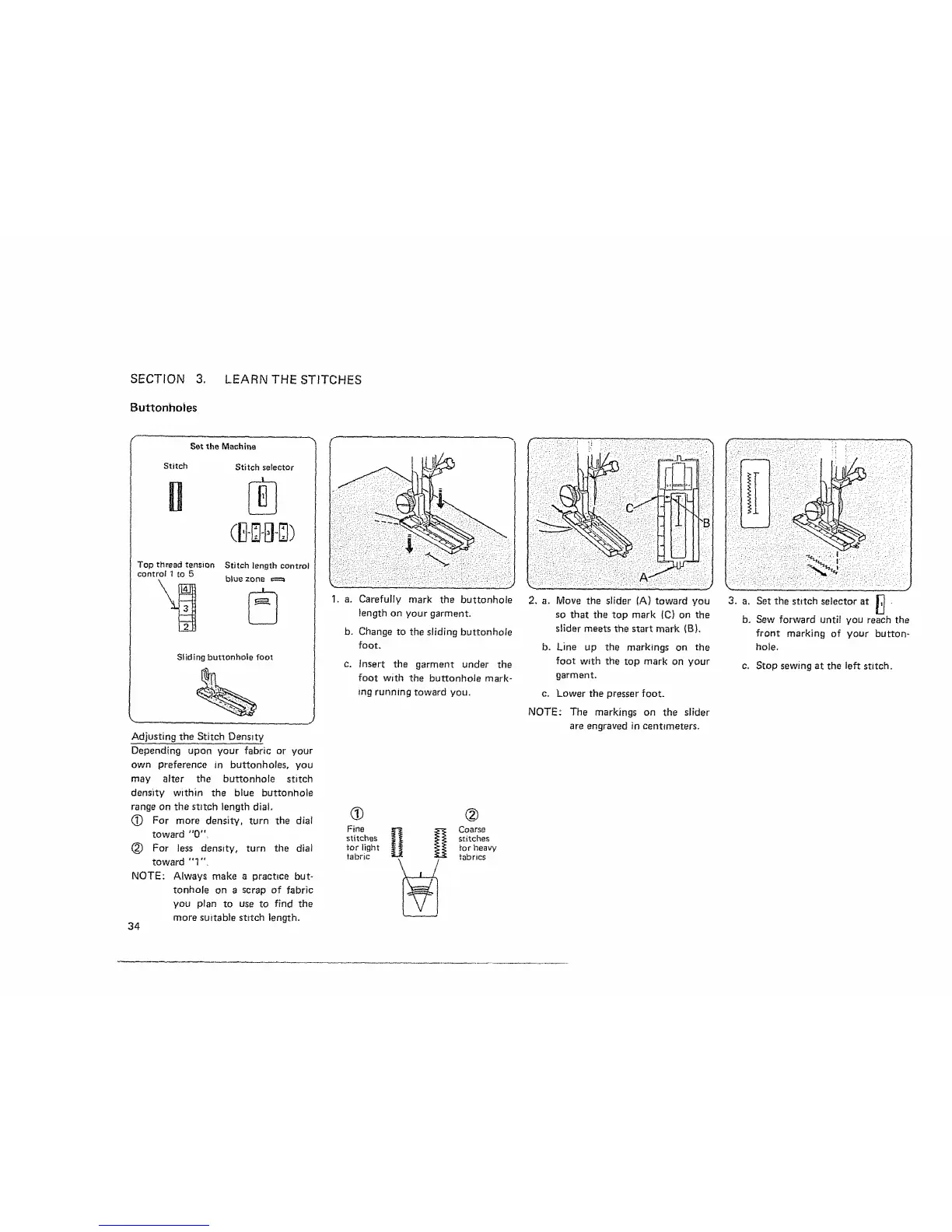b. Change to the sliding buttonhole