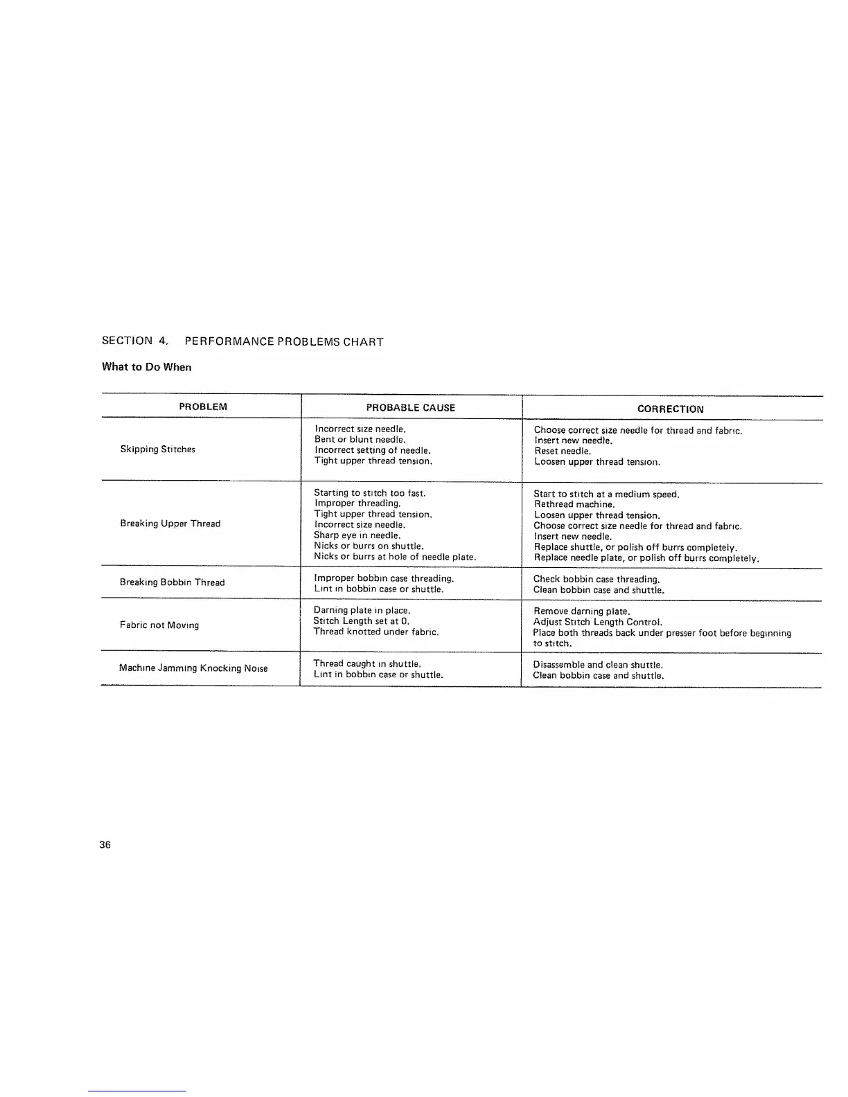 SECTION 4. PERFORMANCE PROBLEMS CHART
