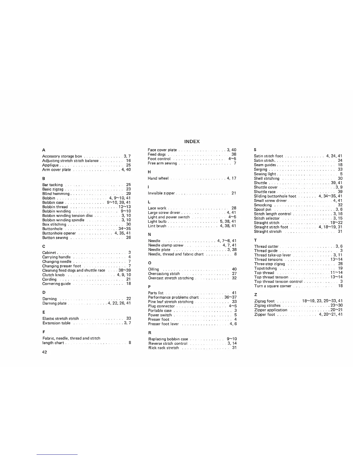 SLiding buttonhole foot ....... 4, 34_35, 41