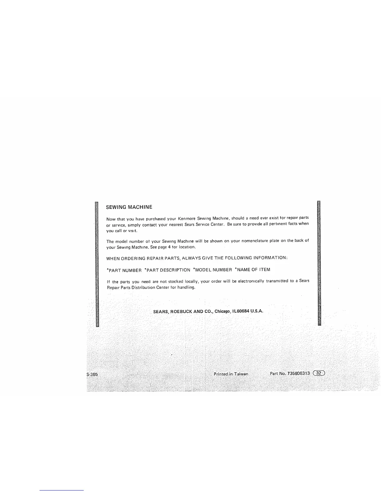 Now that you have purchased your Kenmore Sewing Machine, should a need ever exist for repair parts