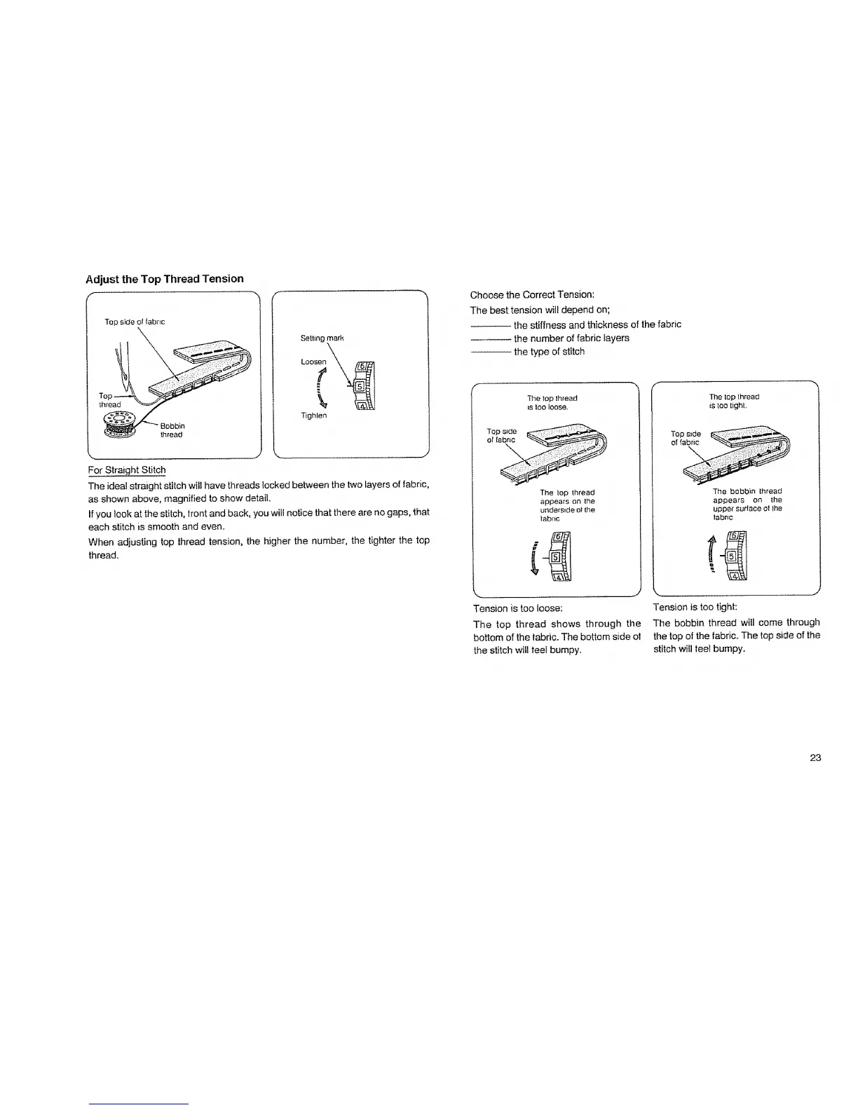 When adjusting top thread tension, the higher the number, the tighter the top